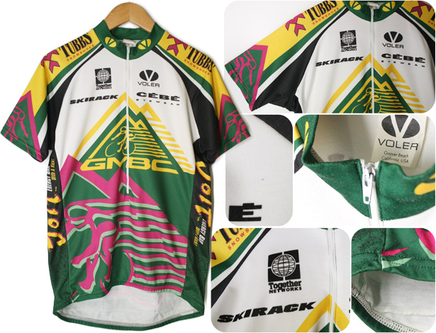 マウンテンバイククラブGMBCのサイクリングウェアです。Tubbs、CEBE、Skirack、TIMEX、Joltなどのスポンサーが入っています。裏地はジャージー素材。VOLERボディです。YKKのハーフジップアップ、アメリカ製。