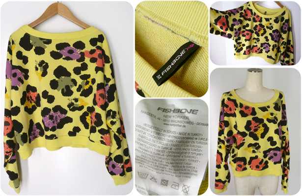 NEWYORKERニューヨーカーFISHBONEのポップなエイティーズデザインのスウェットです。レモン色×サーモンピンク×紫×黒のネオンカラーです。ゆるい感じでどうぞ☆