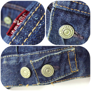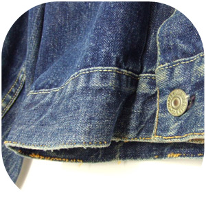 裾の最下部と前立て付近の一部にステッチのほつれ(着用上問題ありません。)